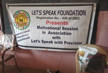 Our basic support and motto are to empower and upskill underprivileged students, which will help them take up societal challenges head-on. We also support various orphanages and organize training for their upliftment and also provide them with various requirements like books, stationery, games, clothes, etc. The Foundation was started under the start-up, Let's Speak With Precision