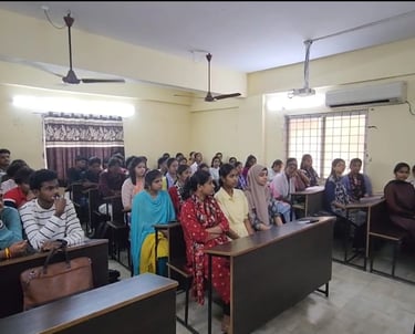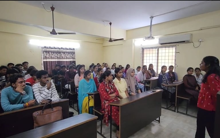 A dynamic session on Communication Skills was conducted, where students delivered impressive team presentations, honing their skills in articulation, collaboration, and audience engagement. Through interactive feedback and peer learning, they refined their abilities, boosting confidence and competence in public speaking and effective communication.